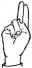 На ћирилици написано МАРИЈА ОЛУЈИЋ састоји се из 12 слова [?]. Исписано ћириличном једноручном азбуком за глувонеме: